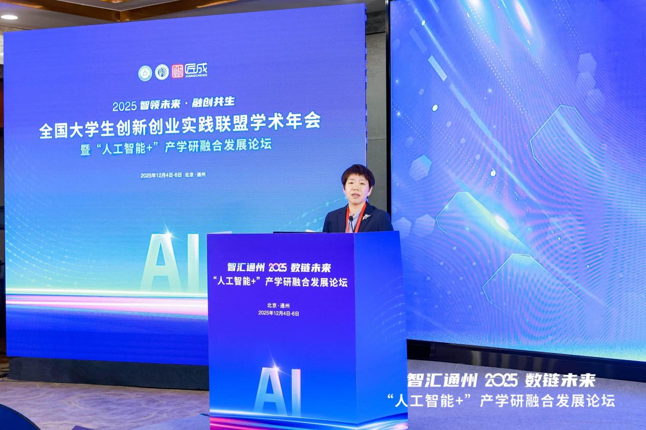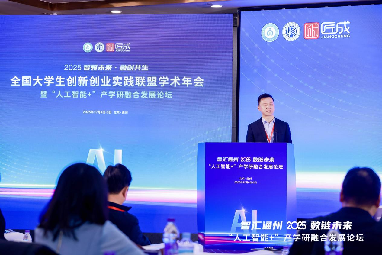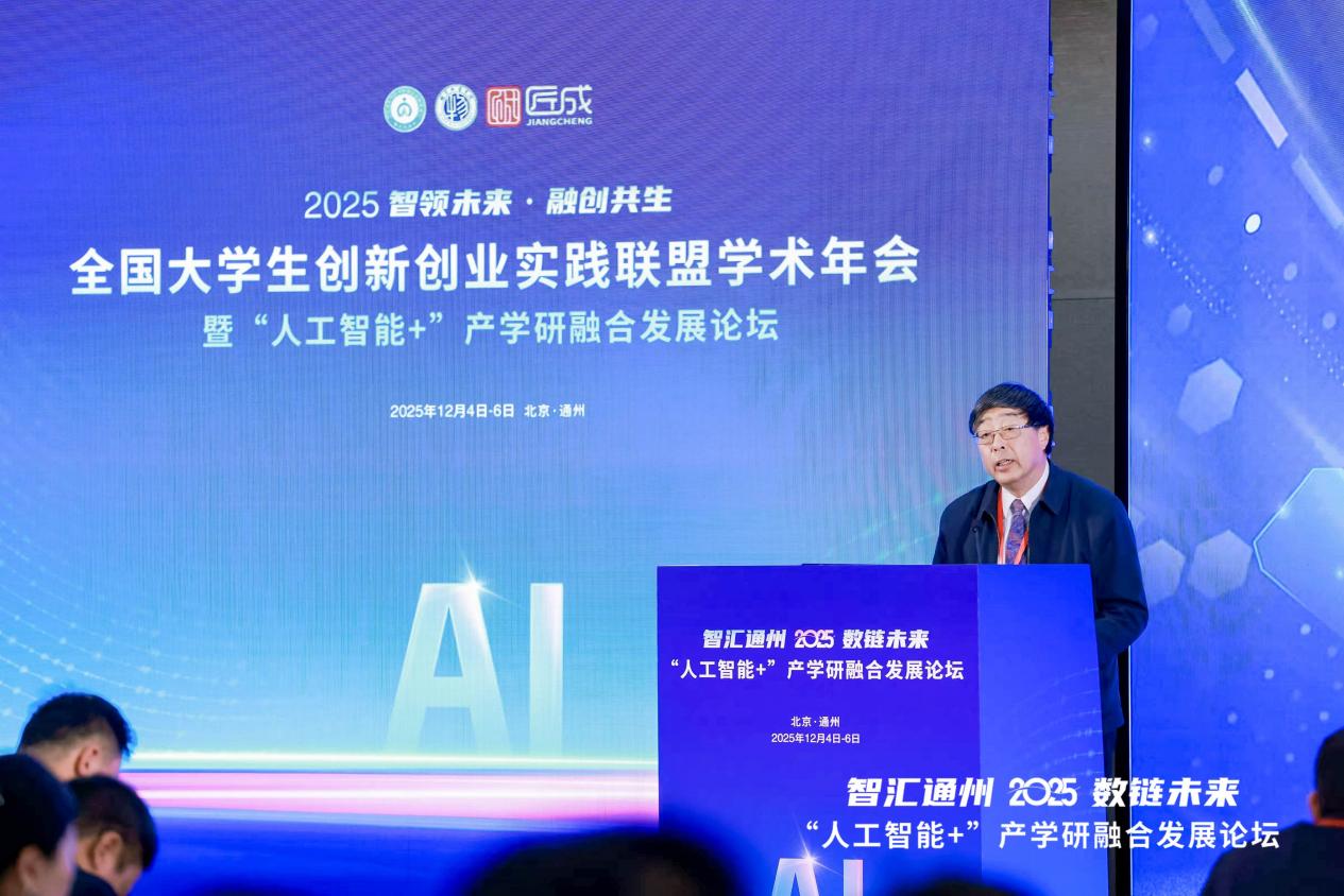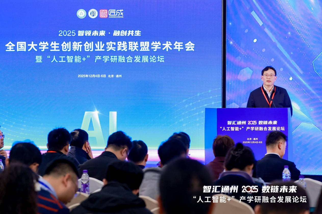 2025年12月4日至6日,全国大学生创新创业实践联盟学术年会(2025)暨“人工智能 +”产学研融合发展论坛在北京通州成功举办。本次年会以“智领未来・融创共生”为主题,旨在聚焦人工智能与创新创业教育的深度融合,推动教育、科技、人才“三位一体”协同融合发展,为国家创新驱动发展战略注入青春动能。年会得到社会各界广泛关注,来自当地政府领导、成员高校和成员企业代表、创新创业专家、投资机构精英及新闻媒体代表等400余人参加会议。