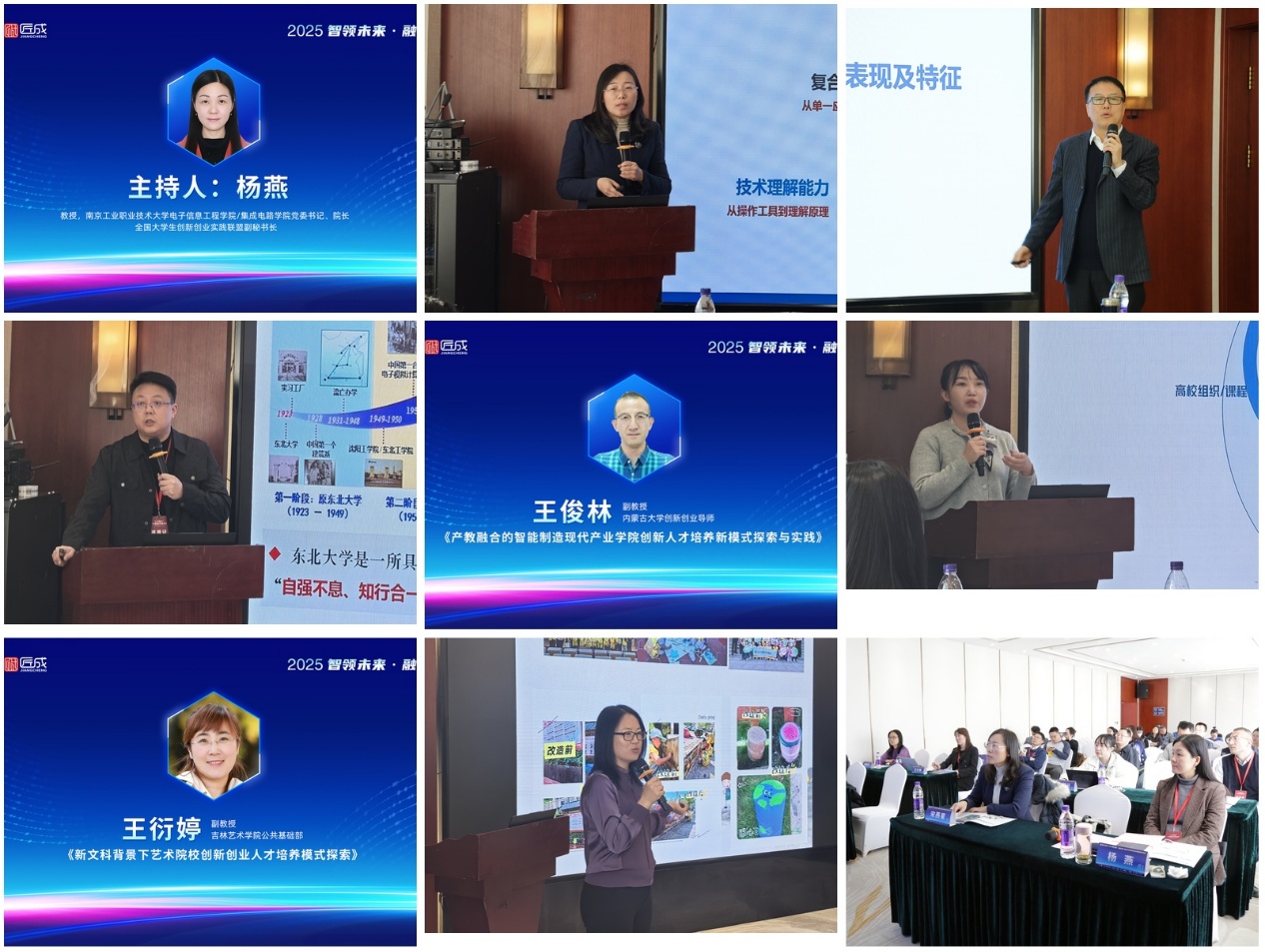 12月6日上午,两场分享会同步举行。大学生创新创业实践优秀案例分享会由实盟副秘书长、南京工业职业技术大学电子信息工程学院/集成电路学院党委书记、院长杨燕主持。分享会邀请来自7所高校的代表作主题发言,分享典型经验。北京物资学院计算机与人工智能学院副院长宋燕星分享《AI时代下的教育变革与思考》。实盟副秘书长,中国政法大学学生就业创业指导服务中心原主任解廷民教授阐述《“人工智能+”时代开展大学生创新创业风险防范教育的理解与认识》。东北大学创新创业学院副院长黄达介绍《基于三创四阶五育的多维拔尖创新创业人才培养与实践》。内蒙古大学创新创业导师王俊林讲述《产教融合的智能制造现代产业学院创新人才培养新模式探索与实践》。四川信息职业技术学院就业创业教研室主任杨蔚云带来《“AI+竞赛+产教”闭环:高职创新创业项目的孵化实践》。吉林艺术学院公共基础部王衍婷分享《新文科背景下艺术院校创新创业人才培养模式探索》。厦门大学嘉庚学院英语语言文化学院院长助理蔡秀星介绍《校—地—政协同视角下大学生创新创业实践教育探索——以厦门大学嘉庚学院“一鹭童行”团队为例》。
