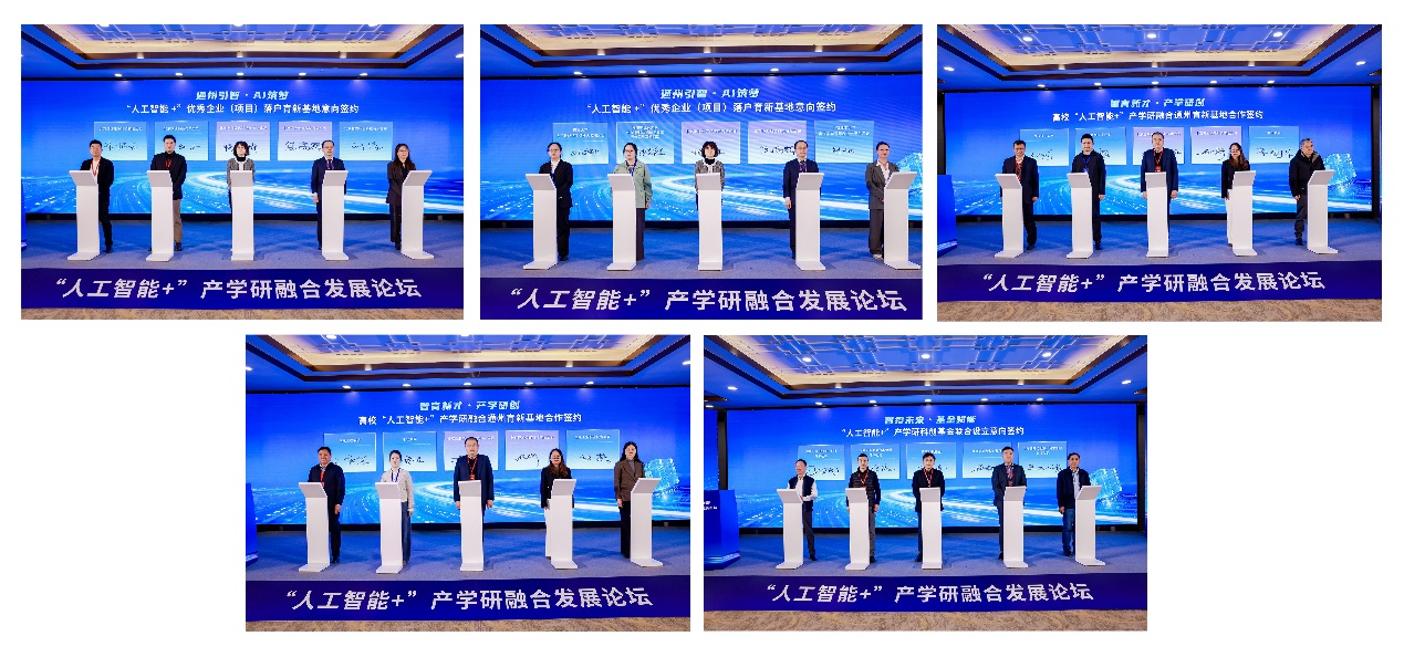 启动仪式后,举行了6个“人工智能 +” 优秀企业(项目)落户育新基地签约、6所实盟成员高校(涵盖 985/211 高校、应用型高校及职业本科)“人工智能 +” 产学研融合通州育新基地高校合作签约,以及5 家知名投资机构携手育新基地联合设立“人工智能 +”产学研科创基金等意向签约。三场重磅签约仪式接连举行,让“政产学研用” 协同从蓝图变为实景。