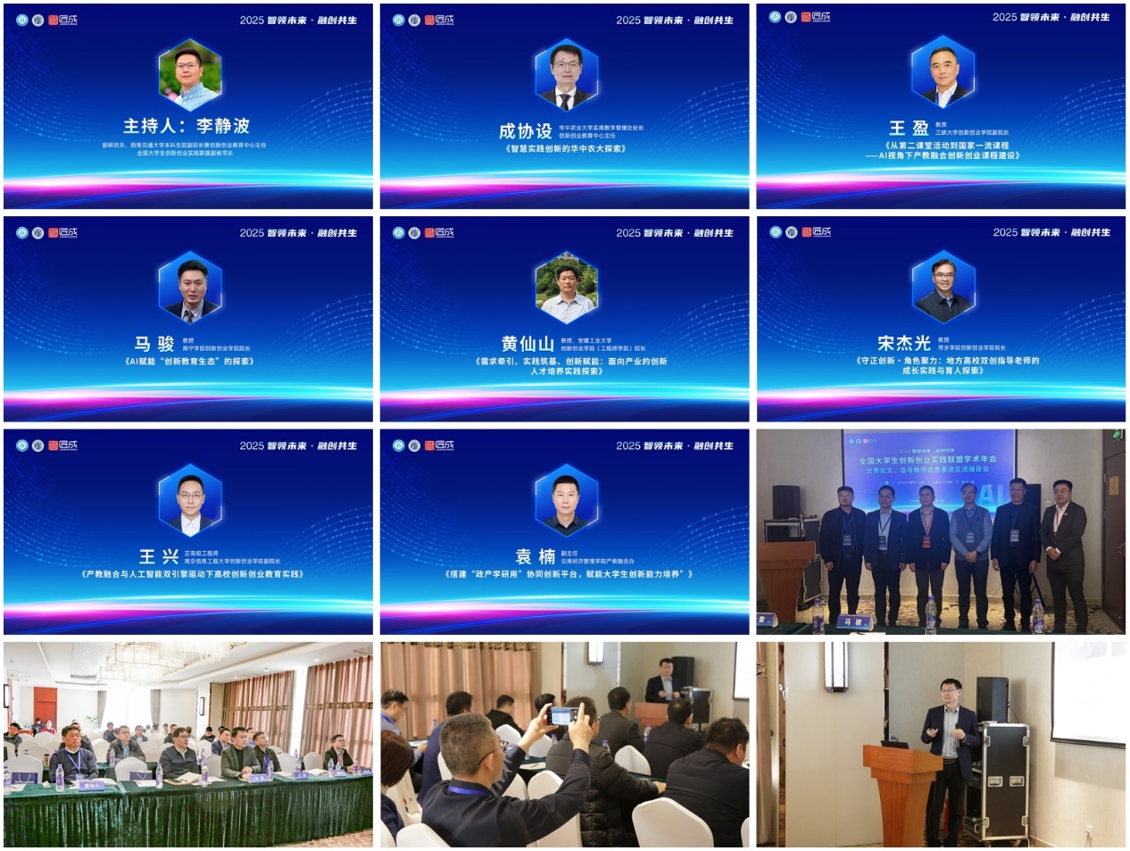 另一场大学生创新创业实践优秀论文、指导教师优秀事迹分享会由实盟副秘书长、西南交通大学本科生院副院长兼创新创业教育中心主任李静波主持。华中农业大学实践教学管理处处长、创新创业教育中心主任成协设分享《智慧实践创新的华中农大探索》。三峡大学创新创业学院副院长王盈讲述《从第二课堂活动到国家一流课程----AI视角下产教融合创新创业课程建设》。南宁学院创新创业学院院长马骏带来《AI赋能“创新教育生态”的探索》。安徽工业大学创新创业学院(工程师学院)院长黄仙山阐释《需求牵引、实践筑基、创新赋能:面向产业的创新人才培养实践探索》。萍乡学院创新创业学院院长宋杰光讲述《守正创新・角色聚力:地方高校双创指导老师的成长实践与育人探索》。南京信息工程大学创新创业学院副院长王兴带来《产教融合与人工智能双引擎驱动下高校创新创业教育实践》。云南经济管理学院产教融合办副主任袁楠分享《搭建“政产学研用”协同创新平台,赋能大学生创新能力培养》。