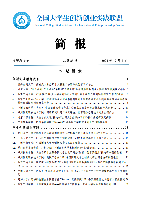 点击下载本期简报:【第89期】全国大学生创新创业实践联盟简报.pdf